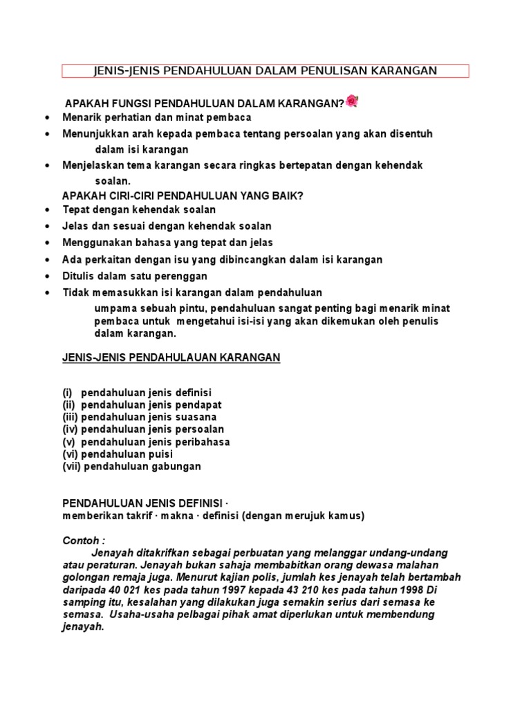 Wadah Keterampilan Berbahasa Rencana 69 Jenis Jenis Pendahuluan Karangan